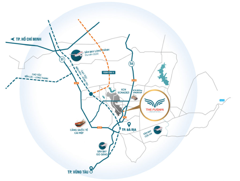The Fusion có vị trí đắc địa, liền kề khu công nghiệp Sonadezi với quy mô 2.287 ha. Ngoài ra, trên địa bàn huyện Châu Đức cũng có hàng loạt khu công nghiệp lớn đang được đề xuất như: Khu Công nghiệp công nghệ cao Cù Bị, do tập đoàn Amata đề xuất, quy mô 3.800 ha; Khu công nghiệp xã Xà Bang 1.200 ha; Khu công nghiệp tại xã Bình Ba, quy mô 800 ha; Mở rộng khu công nghiệp Đá Bạc 700 ha...